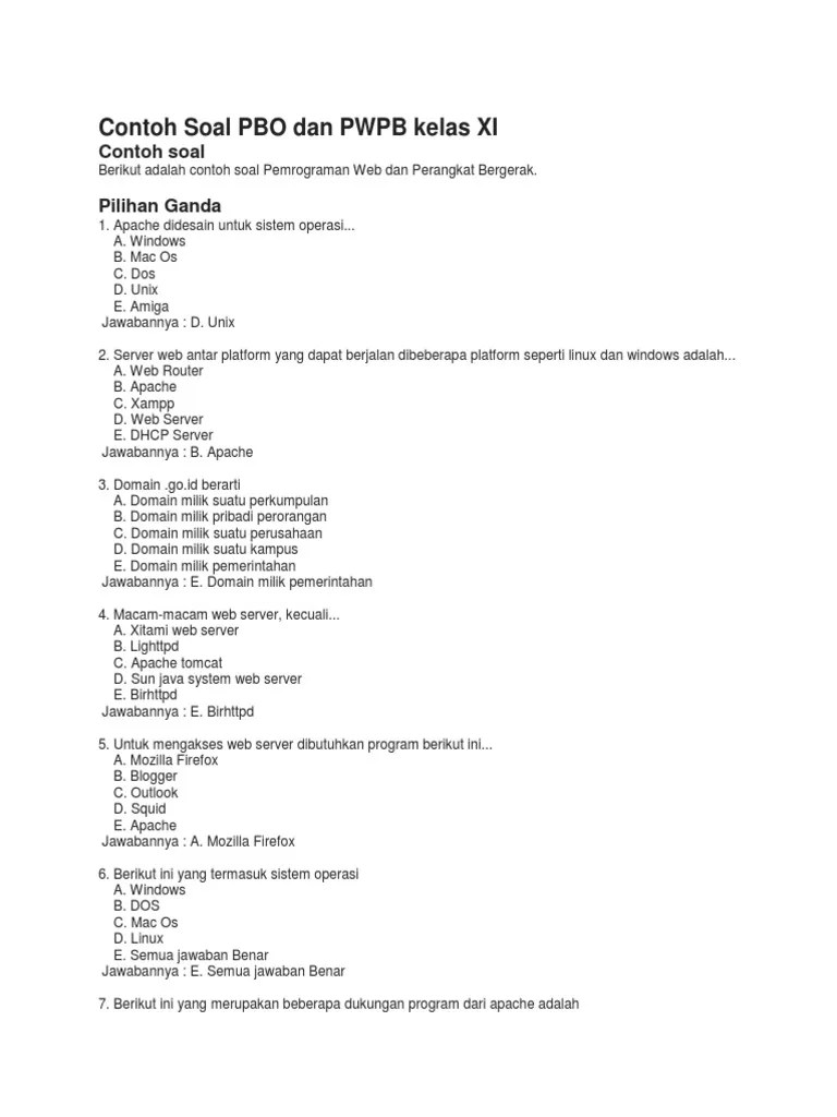 Kelas xi (pemrograman web dan perangkat bergerak). Hanya ditulis nomor soal dan jawabannya saja kemudian dikirim via email saya. Itulah tadi kumpulan contoh soal cerpen pilihan ganda beserta jawabannya kelas 9. Peramban web yang merupakan gagasan bagi . Soal pilihan ganda dan essay pemrograman web & perangkat bergerak dan.